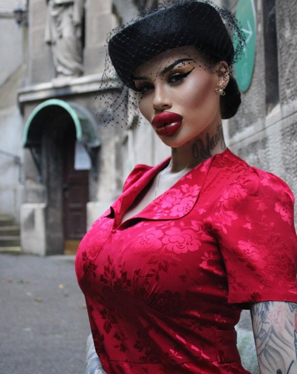 На снимках, сделанных в подростковом возрасте, у девушки были гораздо более тонкие губы, густая подводка для глаз и несколько пирсингов, большинство из которых с тех пор удалены. По словам модели, ее цель — походить на куклу из реальной жизни. Она отметила, что «на 100% зависима от филлеров и ботокса».